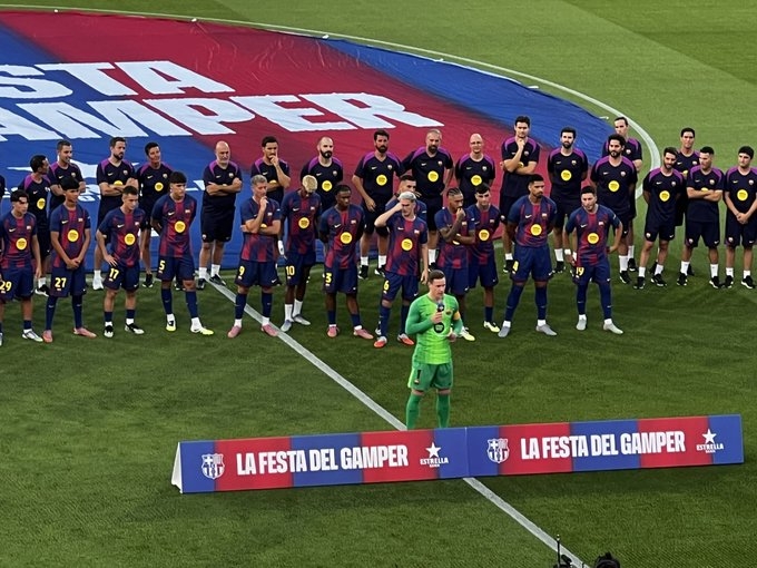 08月11日讯 甘伯杯,巴萨vs科莫,赛前,巴萨队长特尔施特根按照惯例发表季前讲话。记者Alfredo Martínez报道,在他发言时,全场掌声雷动...