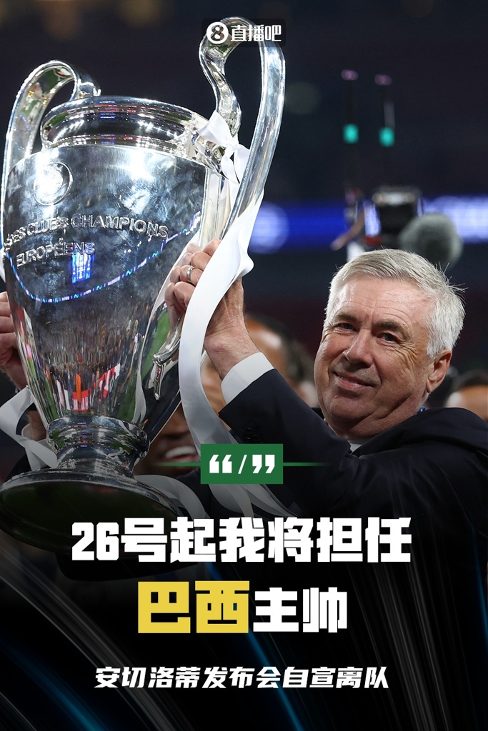 带队350场夺15冠!安切洛蒂发布会自宣:26号起我将担任巴西主帅