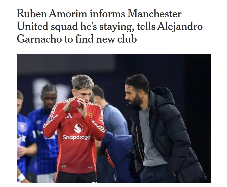 阿莫林已向曼联全队明确,他将继续执掌球队下赛季教鞭,同时告知阿根廷边锋加纳乔需寻找新东家。
