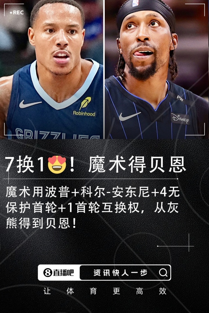 06月15日讯 据名记Shams报道,大交易发生:灰熊将贝恩交易至魔术,换波普+科尔-安东尼+四个不受保护的首轮签+一个首轮签互换权!