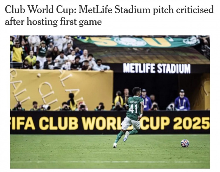 草皮问题在去年夏天的美国美洲杯上就曾引发抱怨。阿根廷队主教练斯卡洛尼称亚特兰大梅赛德斯-奔驰体育场的草皮不符合标准;门将马丁内斯更直指其为“灾难”“像蹦床一样”。去年美洲杯期间,大都会体育场草皮两侧还曾出现明显的褐色斑块。