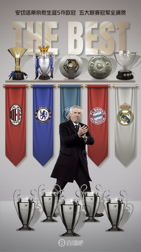 安切洛蒂现年65岁,意大利籍主帅。他执教生涯五夺欧冠,并且包揽五大联赛冠军,是足坛历史第一人。